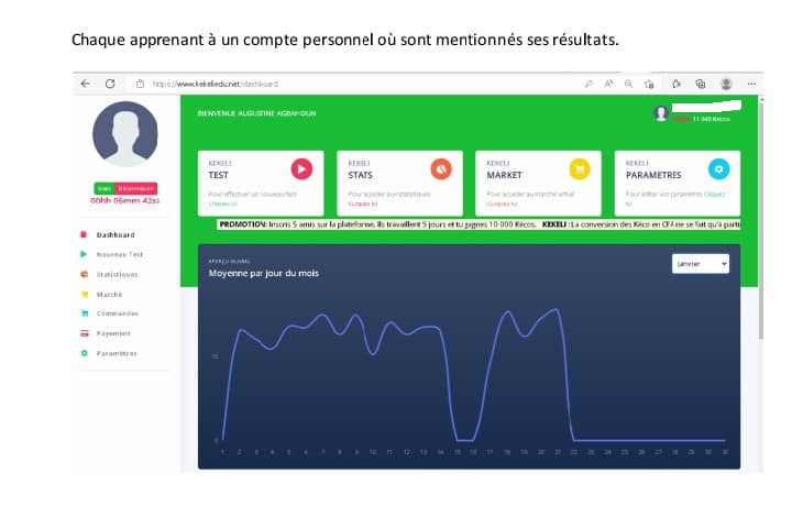 Chez Kékéli, les bonnes notes obtenues sont récompensées par un bonus appelé « Kéco », une monnaie numérique qui permet aux apprenants d’acquérir du temps supplémentaire d’accès au questionnaire ou d’acheter des biens de consommation disponibles dans la boutique virtuelle de la plateforme.